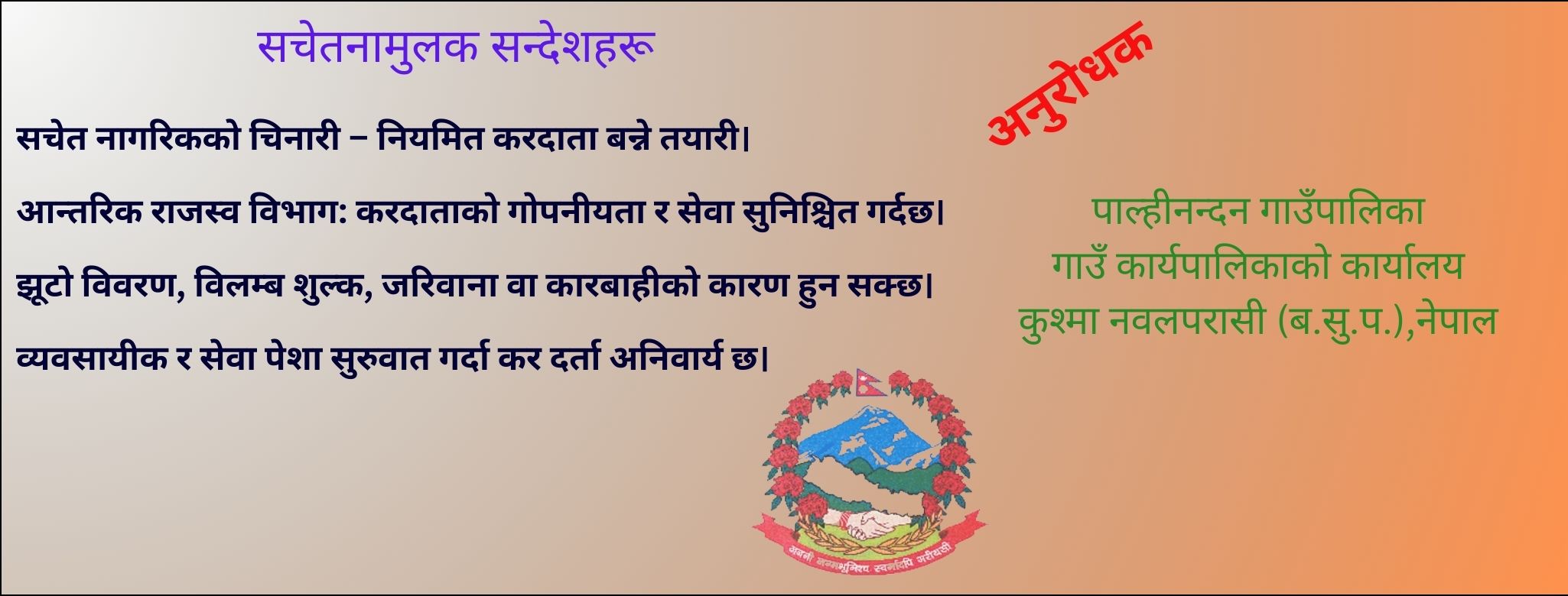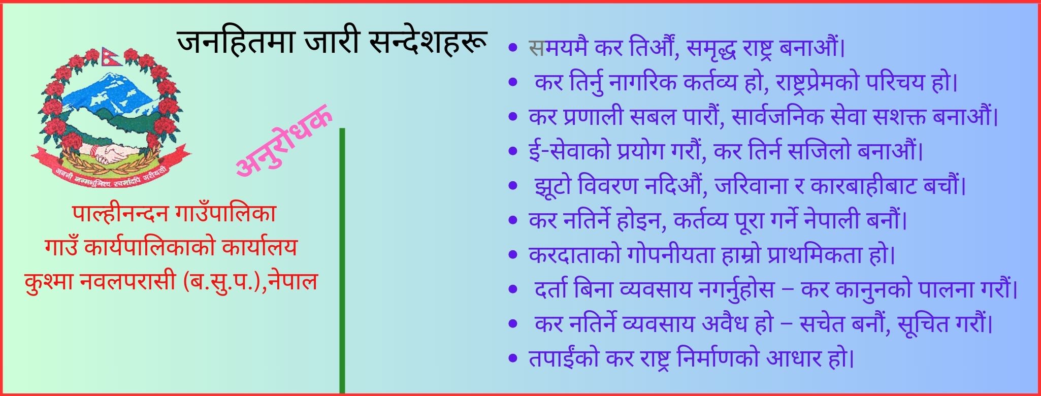 पाल्पा — लुम्बिनी प्रदेश सरकारको लगानीमा तिनाउ गाउँपालिका–२ मा निर्माण गरिएको ‘नुवाकोट सांस्कृतिक डबली’ सञ्चालन तथा व्यवस्थापनको जिम्मेवारी अब तिनाउ गाउँपालिकाले पाएको छ। प्रदेश सरकार […]